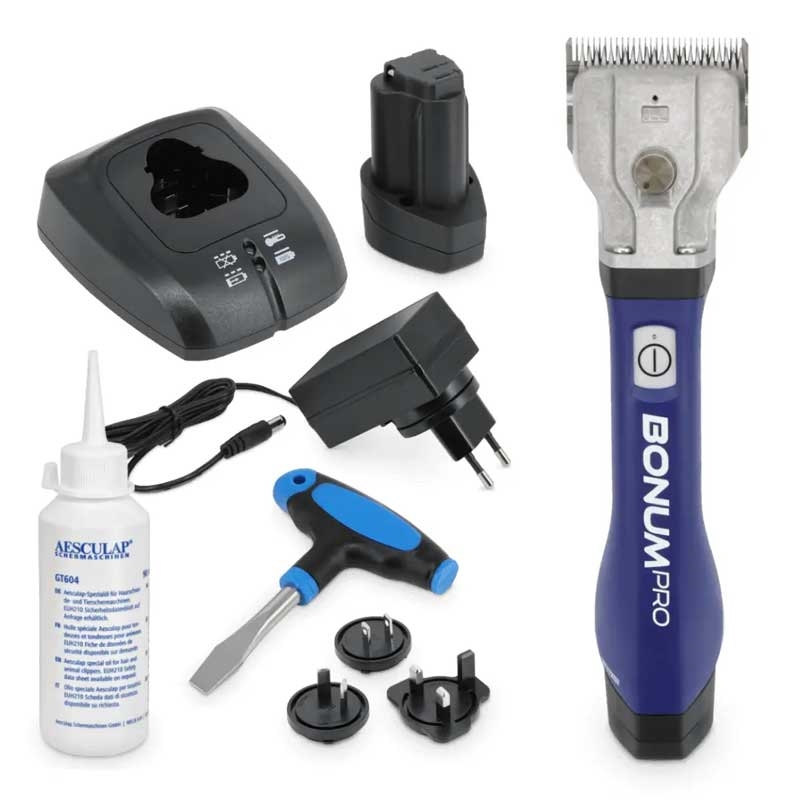 Aesculap Bonum Pro klippemaskine med batteri er en kompakt og kraftfuld maskine designet til professionelle behov. Med opgraderet motor, ergonomisk greb og intelligent batteriteknologi får du en effektiv og behagelig klipning – selv ved langvarig brug. Det støjsvage design gør den ideel til følsomme og nervøse heste. Lithium-ion batteriet giver op til 130 minutters driftstid, og maskinen leveres komplet med alt, du skal bruge, inkl. olie, oplader og kamsæt. Bonum Pro er et pålideligt valg for ryttere og klippere, der ønsker høj ydeevne og maksimal komfort.
