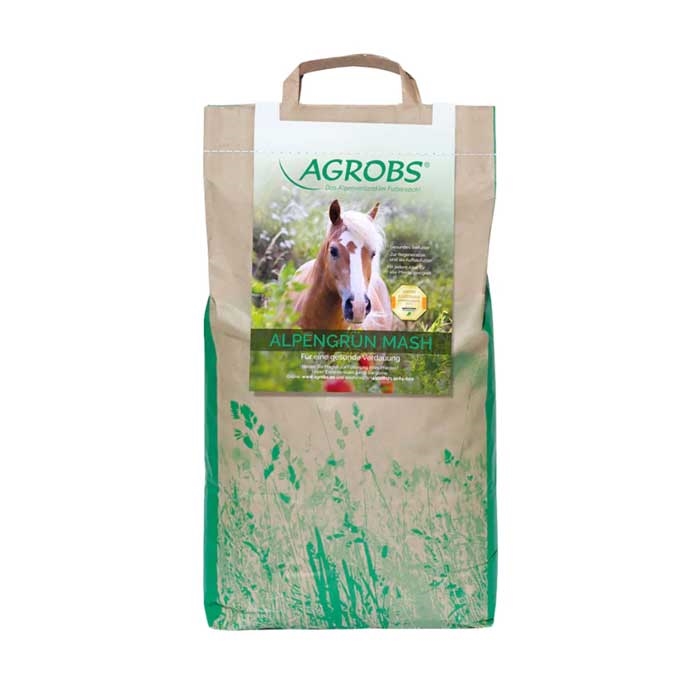 Eksempel: 100 g ALPENGRÛN Mash tilsættes mellem 300-700 ml vand. Mængden af vand afhænger af hestens præferencer og formål med tildeling.