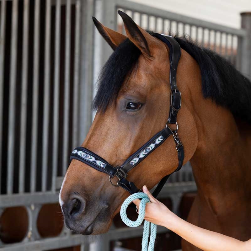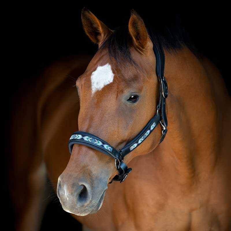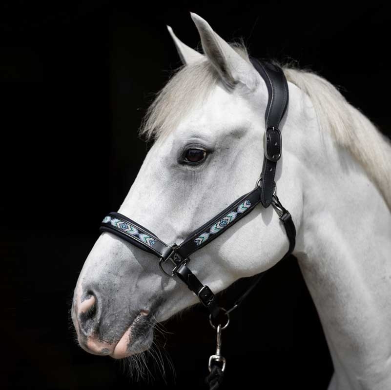 Blød neoprenpolstring ved nakke og næse giver ekstra komfort, mens den rundsyede, bløde kæberem fuldender det gennemtænkte design. Gun metal-spænder med præget hestelogo giver et elegant finish.