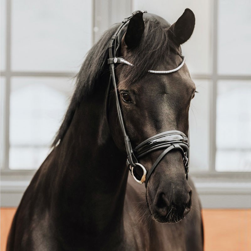 Finesse trense "Cassidy" rundsyet m. lak - sort/sort/sølvFinesse trense, rundsyet - sort/sort m. lakFinesse Bridles trense rundsyet - sort m. sort foring og lak