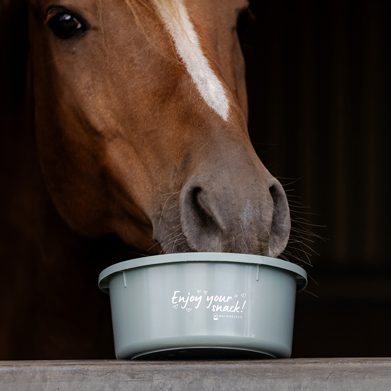 Praktisk spand til 2 liter foder/hestebolcher, eller til blanding af tilskudsprodukter/mash. Spanden er fremstillet i kraftigt plastik så musene holdes ude. I flad "baljeform" så de kan stables. Låg medfølger.