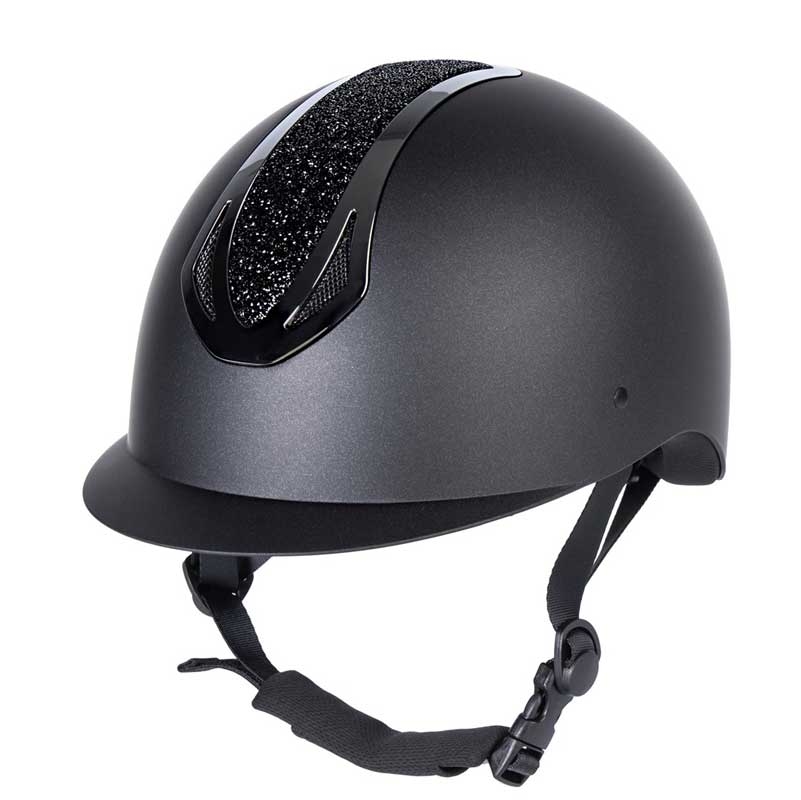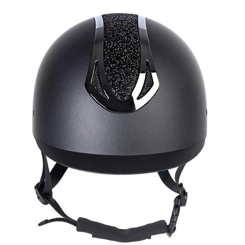 Harrys Horse ridehjelm "Pro F1 Matt Sparkle" er en stilfuld hjelm med luksuriøst udtryk, der kombinerer høj sikkerhed med god komfort. Hjelmen lever op til CE EN1384:2023 sikkerhedsstandarden og er udstyret med et praktisk dial-fit system bagpå, så størrelsem nemt kan justeres. Den matte finish får et eksklusivt twist med en dekorativ sparkle/glitter-detalje og en flot krystaltop, der giver et elegant look til både træning og stævne. Inderforet kan tages ud og vaskes, så hjelmen er nem at holde frisk, og ventilationsåbningerne sikrer behagelig luftgennemstrømning.