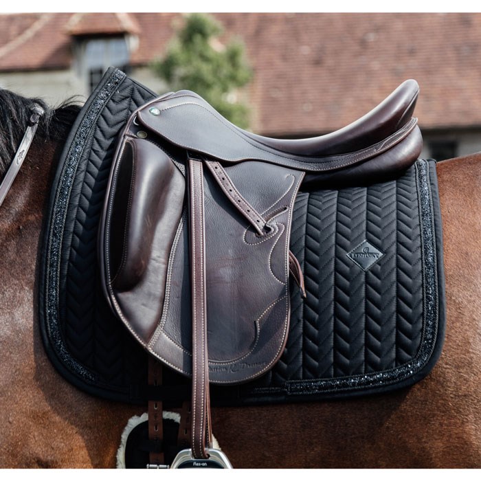 Super lækkert underlag fra Belgiske Kentucky Horsewear. Underlaget er fremstillet med smudsafvisende yderside i elegant "fishbone" quiltning. Underlaget er desuden dekoreret med en bred kant af glitrende krystaller.