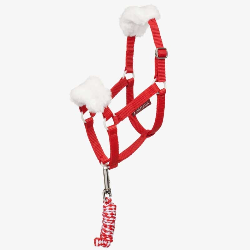LeMieux "Hobby Horse Christmas" grime m. plys til kæphest - rød/hvidLeMieux "Hobby Horse Christmas" grime m. plys til kæphest - rød/hvid