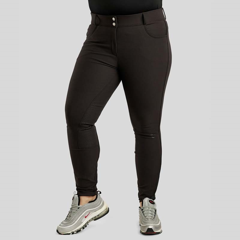 Klassiske ridebukser med ekstra høj talje. Det enkle design er bevaret og tilføjet et tone i tone logo ned ad højre ben og et lille tone i tone logo ved venstre knæ. Ridebukserne er udstyret med slidstærk silikone fuldgrip i et nyt og smukt mønster. Fremstillet i Yati-stof, som er meget fleksibelt takket være et unikt udviklet 4-vejs-stretchmateriale som let tilpasser sig kroppens former. Derudover er ridebukserne slidstærke, åndbare, vandafvisende og smudsafvisende. Yati-stof er din garanti for kvalitetsridebukser som giver optimal bevægelsesfrihed og høj komfort.