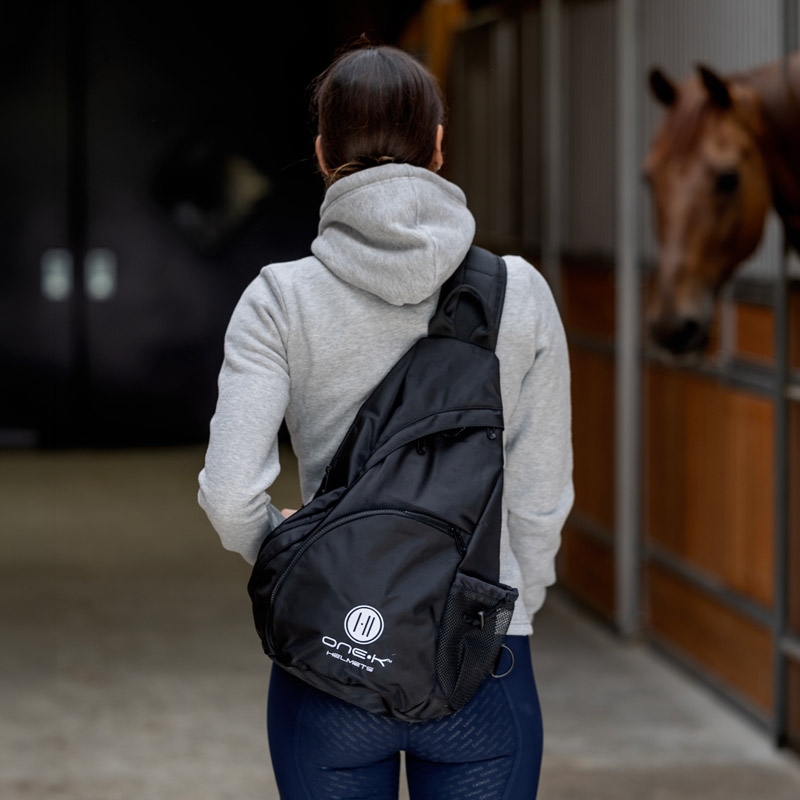 OneK hjelmtaske er en praktisk og stilren taske til sikker opbevaring og transport af din ridehjelm. Tasken er lavet i slidstærkt nylon og har en polstret, stødabsorberende foring, der hjælper med at beskytte hjelmen mod ridser og stød i stalden, bilen og på stævnepladsen. En smart lynlåslomme giver plads til småting som hårnet, handsker eller ekstra liner, så det hele kan samles ét sted. Skulderstroppen er justerbar, og det diskrete One K-logo fuldender det enkle look.