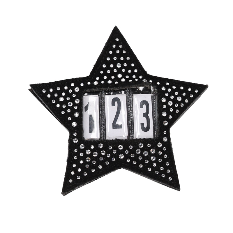 QHP stævnenummer "Jipp Star" er et iøjnefaldende stævnenummer formet som en stjerne, perfekt til rytteren der vil have et elegant touch til stævnelooket. Nummerholderen er fremstillet i læder og pyntet med glitrende rhinsten, som giver ekstra bling. Den leveres med udskiftelige tal, så det er nemt at tilpasse nummeret til dagens klasse. Jipp Star kan sættes på både trense eller underlag, og monteringen klares hurtigt med velcro eller sikkerhedsnål, alt efter hvad der passer bedst.