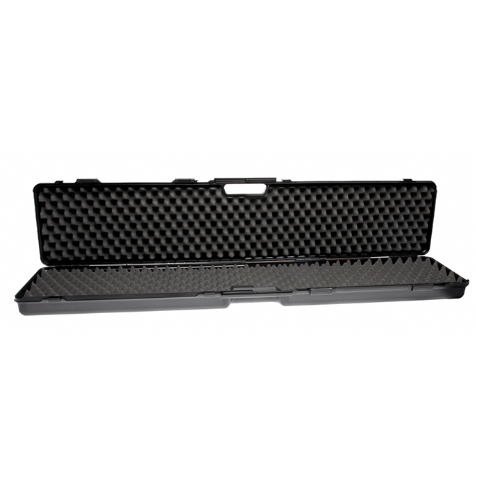 Denne riffelkuffert i sort plast er en enkel og funktionel løsning til dig, der ønsker god beskyttelse af riflen under både transport og opbevaring. Kufferten er designet til at passe til de fleste standardrifler med sine mål på 120 x 23 x 11 cm, og den robuste plastkonstruktion hjælper med at skærme mod stød og slag, når du er på farten.