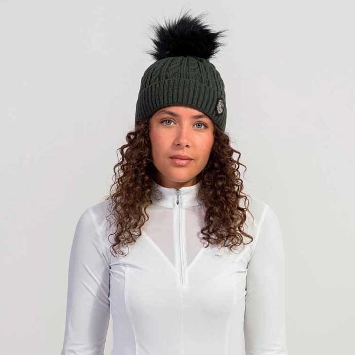 Strikket hue med kvast og logo i Swarovski krystaller fra Samshield - grøn