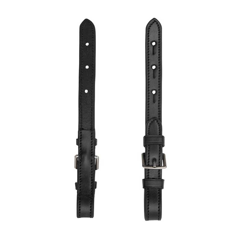 Sort læder med sølvspænder. Prisen er for 2 stk.