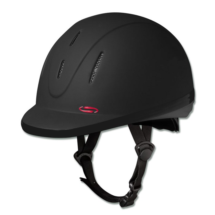 Høj komfort med denne letvægts ridehjelm fra Swing. Hjelmen er med 4 udluftningshuller fortil med mesh der holder insekterne ude, samt 2 udluftningshuller bagtil. Størrelsen justeres med praktisk drejehjul i nakken.