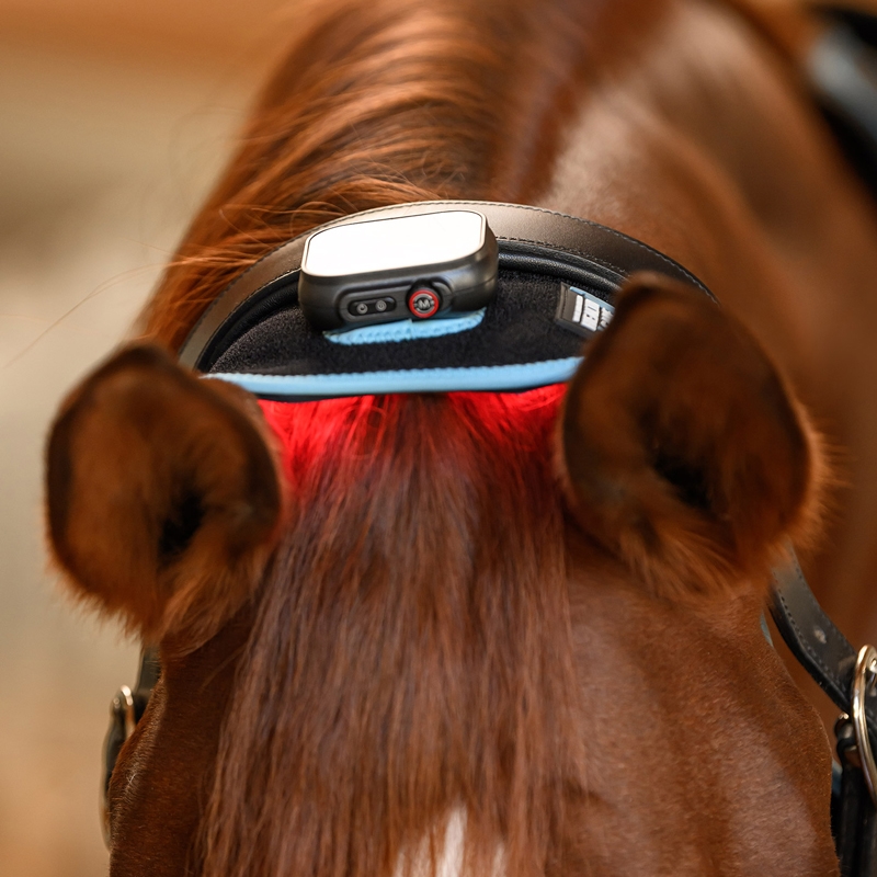 Padden giver en behagelig dybdevarme, som kan hjælpe med at løsne spændinger og stimulere stofskiftet i området. Infrarødt lys kan indstilles i 3 niveauer (660 nm + 850 nm), og både varme (ca. 38–48 °C) og vibration kan reguleres separat, så behandlingen kan tilpasses hestens behov og tolerance. Vibrationsfunktionens tre indstillinger giver mulighed for alt fra blid, kontinuerlig vibration til intervaller, hvilket kan opleves som beroligende og afslappende.