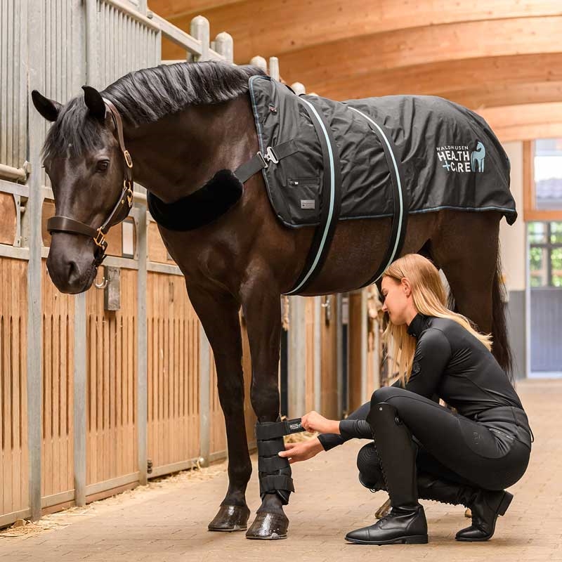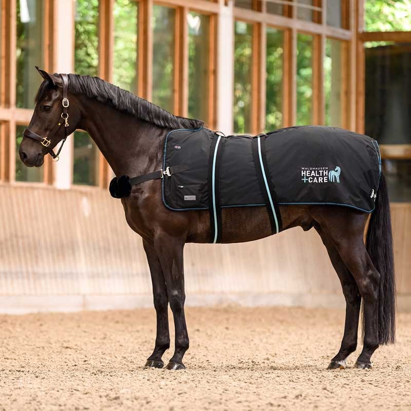 Waldhausen massagedækken "Health + Care TecSupreme Heating and Massage" giver hesten velvære med et tryk på en knap. Dækkenet er udviklet til at løsne spændte muskler, støtte blodcirkulationen og hjælpe kroppen med at restituere – perfekt før træning, efter arbejde eller som et roligt wellnessprogram i stalden. Hver side af dækkenet har sit eget varmesystem og syv integrerede massagepunkter, og højre/venstre side kan styres individuelt, så behandlingen kan tilpasses præcis dér, hvor hesten har brug for det.