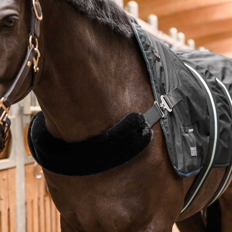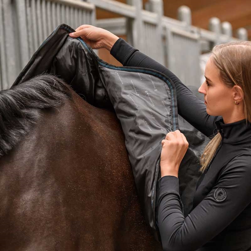 Varme og massage kan være en stor hjælp til heste, der let bliver stive, til klippede heste i koldt vejr, eller som et ekstra komfortlag i perioder med øget belastning. Massagefunktionen kan støtte lymfeflow og hjælpe kroppen med at komme af med affaldsstoffer, mens den jævne varme kan virke afslappende og beroligende. Intensiteten justeres nemt med 3 vibrationsniveauer og 3 varmeniveauer (45–65 °C), og varighed kan være ca. 3-8 timer afhængigt af indstilling.